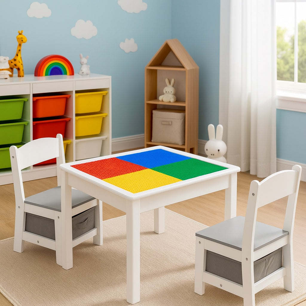 Детска Маса с 2 Столчета, Двустранна, за Рисуване и за Редене на Конструктори тип LEGO189.00 лв / 96.63
