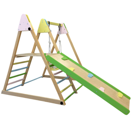 Детски дървен Pikler (пиклер) триъгълник 4 в 1 – люлка, пързалка, катерушка и рампа | Ginger Home479.00 лв / 244.91
