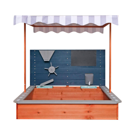Детски Пясъчник GINGER HOME с Регулируем Покрив с UV Защита, 117x117x113 см, Дървен – Идеален за Игра на Открито