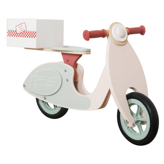 Изчерпана НаличностОчаквана дата на доставка: 20.04.2026Детско Дървено Баланс Колело GINGER HOME – Мотоциклет с Кутия за Пица, 81×36×52 см