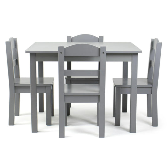 Детска Маса с 4 Столчета GINGER HOME – Дървена Детска Маса за Игра и Учене, Сив Комплект 66×56×48 см