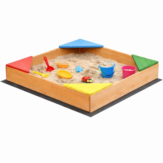 Sold outEstimated delivery date: 15.04.2026Детски дървен пясъчник GINGER HOME с 4 седалки – 90x90 см, за двор и градина