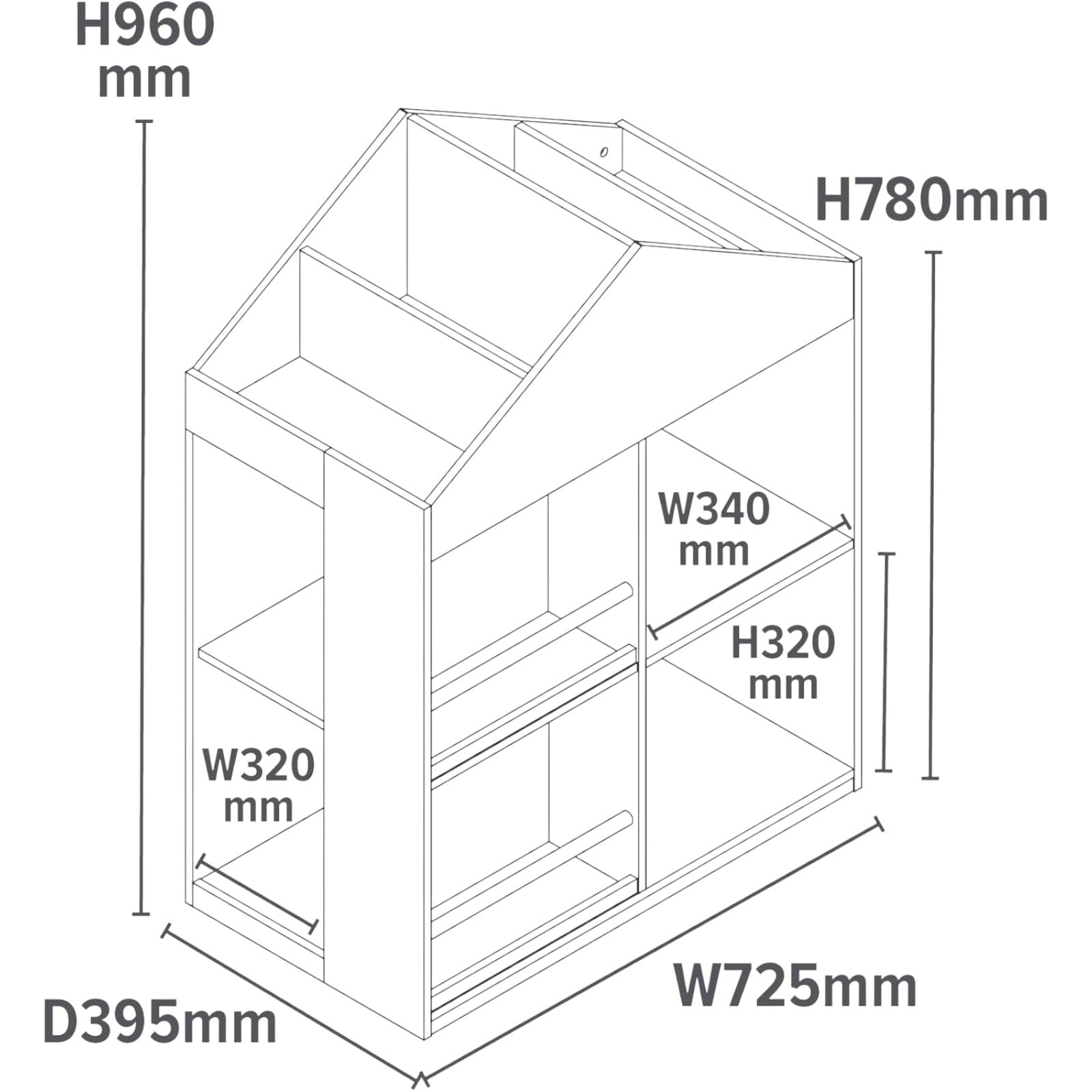 С формата на къщичка с прозорчета, Детска етажерка за играчки и книги превръща съхранението в забавление. Разполага с 6 просторни отделения и страничен скрит сектор, идеални за подреждане на книги, кутии, пъзели и играчки. Вградената черна дъска за рисуване с тебешир на Детската етажерка стимулира креативността и фината моторика.